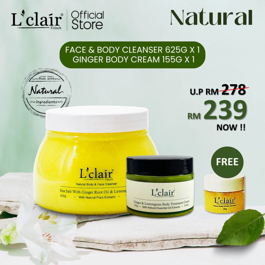 Lclair Sea Salt (1 x 625g) + Ginger Body Oil (1 x 55ml) + Scalp Treatment Shampoo (1 x 525ml) [Free Sea Salt 1 x 155g]