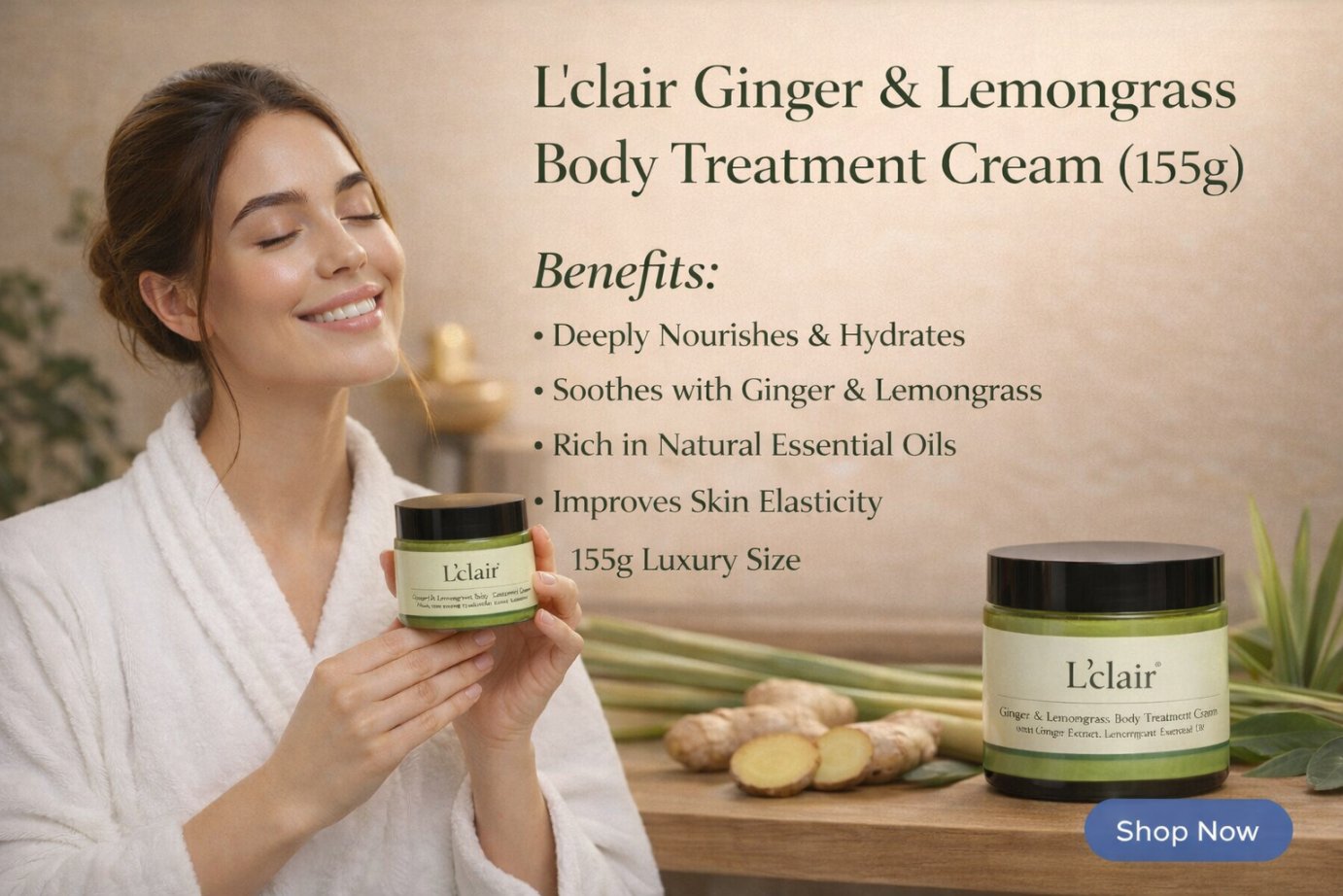 Lclair Ginger & Lemongrass Body Treatment Cream (155g)